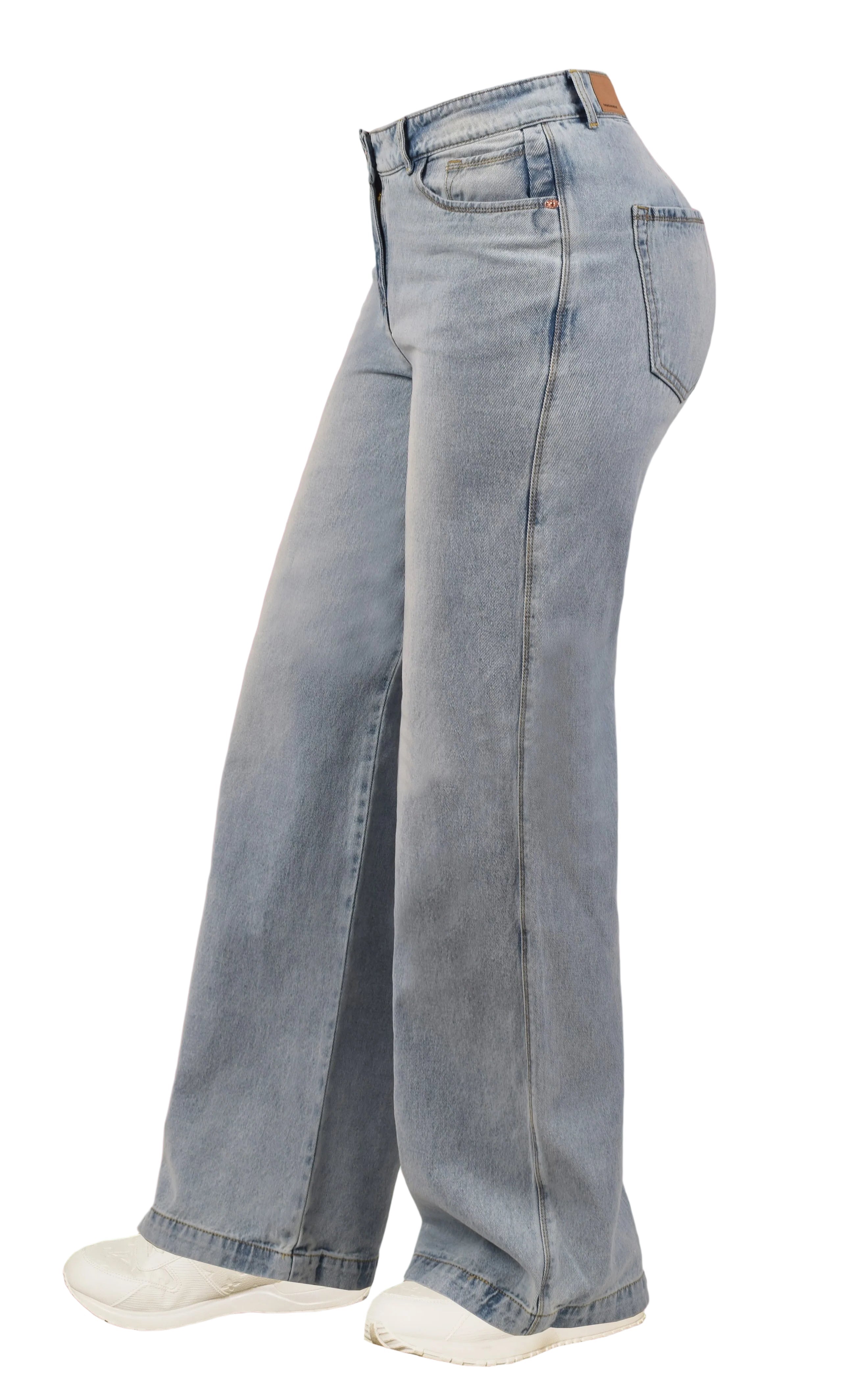 Los jeans de mujer Palazzo son la combinación perfecta de estilo y comodidad. Con su acabado brillante y su caída amplia, te permiten moverte con libertad, irradiando confianza y un toque audaz en cada paso.